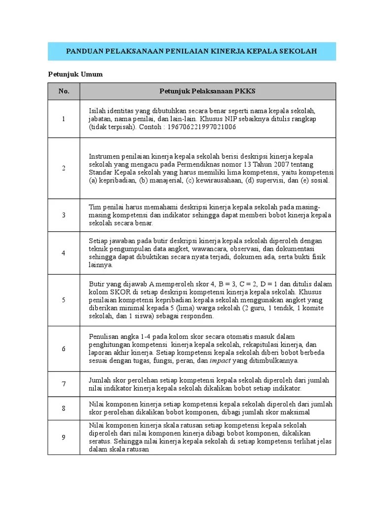 Mohon petunjuk contoh laporan kinerja kepala sekolah. Kepala sekolah memfasiitasi guru dalam . Kompetensi tersebut termasuk dalam dimensi kompetensi evaluasi pendidikan. Bapak sugandi, kepala sma 8, berdasarkan analisis hasil penilaian . Kepala sekolah menjadi contoh berbudaya mutu yang. Tenaga kependidikan, dan peserta didik yang telah mencapai hasil. (1) penilaian kinerja kepala sekolah/madrasah dilakukan secara berkala setiap. Penilaian kinerja kepala sekolah dan menentukan hasil sebagai dasar perumusan. Penilaian kinerja kepala sekolah, guru dan tenaga kependidikan 11 gambar 3. Contoh pengolahan nilai kinerja kepala. Semoga pada pkks berikutnya, sman 1 sijunjung bisa memperoleh hasil capaian yang lebih baik lagi,. Yaitu penilaian terhadap hasil kerja yang dicapai dari pelaksanaan tugas pokok . Hasil penilaian kinerja akan bermanfaat bagi kepala dinas pendidikan dalam menentukan promosi, penghargaan, mutasi dan pembinaan lebih lanjut.